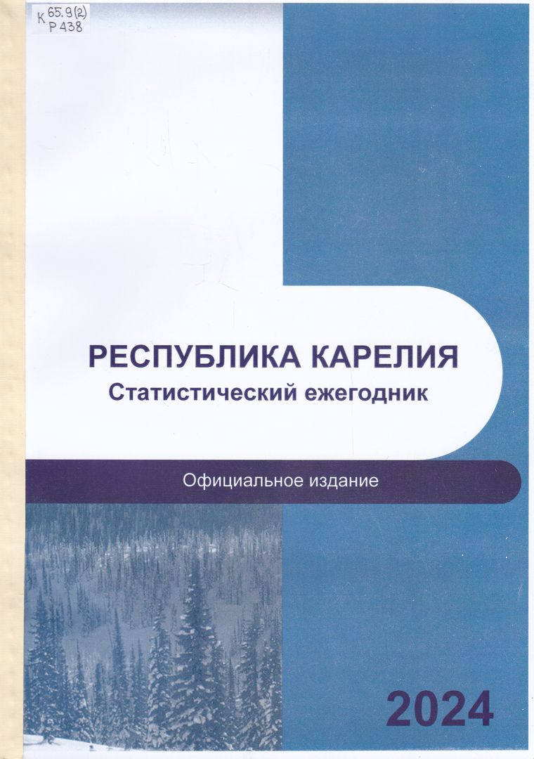 Р 438 Республика Карелия : статистический ежегодник : статистический сборник [за 2019 - 2022 гг.] / Федеральная служба государственной статистики, Территориальный орган Федеральной службы государственной статистики по Республике Карелия (Карелиястат) ; редакционная коллегия: М. Г. Немировченко (председатель) [и др.]. - Петрозаводск : Карелиястат, 2024. - 355 с. : табл. ; 30 см. - Текст : непосредственный