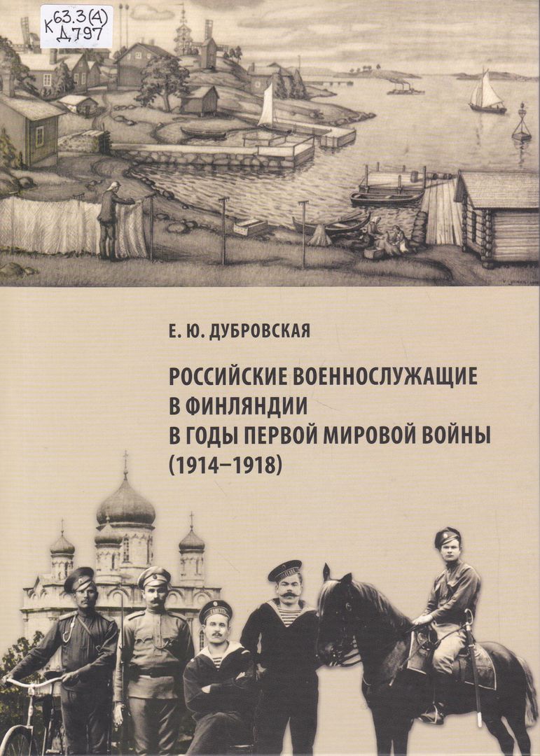 Российские военнослужащие в Финляндии в годы Первой мировой войны (1914 - 1918) : монография / Е. Ю. Дубровская ; редактор Б. И. Колоницкий ; Федеральный исследовательский центр "Карельский научный центр Российской академии наук", Институт языка, литературы и истории КарНЦ РАН. - Петрозаводск : КарНЦ РАН, 2024. - 455 с. : ил., факс. ; 21 см. - Библиография: с. 437-451 и в подстрочных примечаниях. - ISBN 978-5-9274-1002-6. - Текст : непосредственный