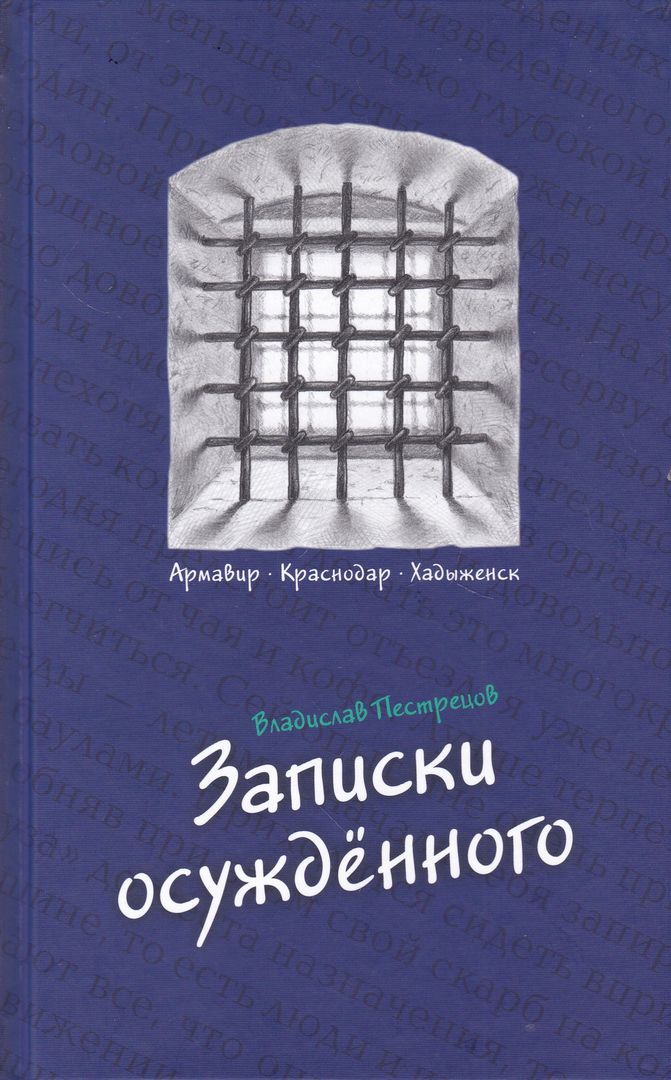 Записки осуждённого : [Армавир, Краснодар, Хадыженск] / Владислав Пестрецов. - Петрозаводск : Скандинавия, 2025. - 222, [1] с. ; 21 см. - ISBN 978-5-94804-186-5. - Текст : непосредственный